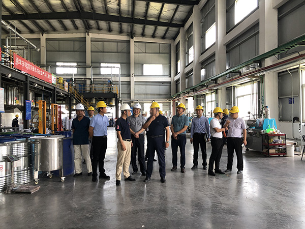公司總經(jīng)理江孝林帶陳書記進(jìn)入生產(chǎn)車間參觀,詳細(xì)介紹了當(dāng)前的生產(chǎn)經(jīng)營狀況以及安全保障措施和發(fā)展中存在的問題和困難