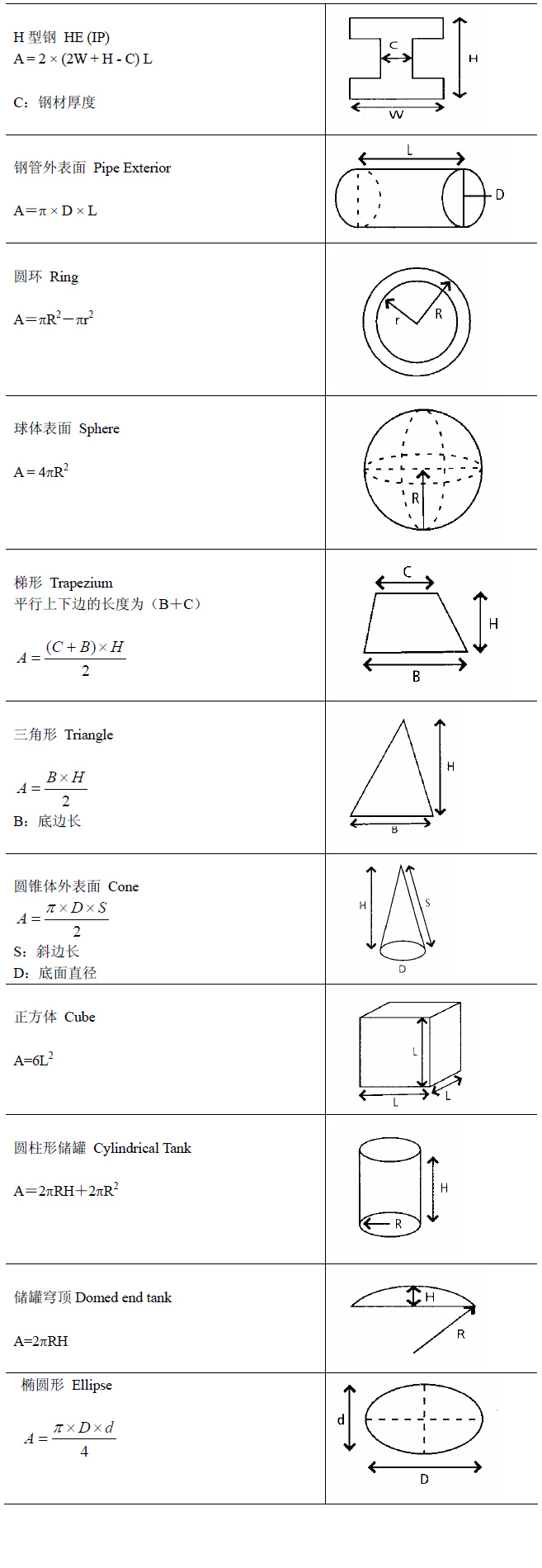 注:以上面積為鋼板兩個表面積,如果只要單面面積,減半即可。