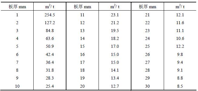 鋼板的厚度,以及重量,與表面積有著一定的關系,只要知道鋼板的厚度,就可以計算出每噸鋼板的面積。